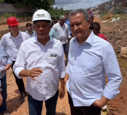 Jerônimo Rodrigues e Rui Costa acompanham obras de macrodrenagem no Rio Mangabeira, em Salvador
